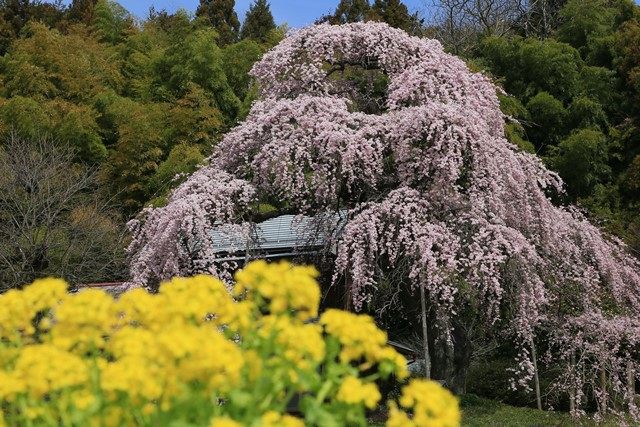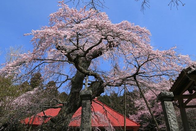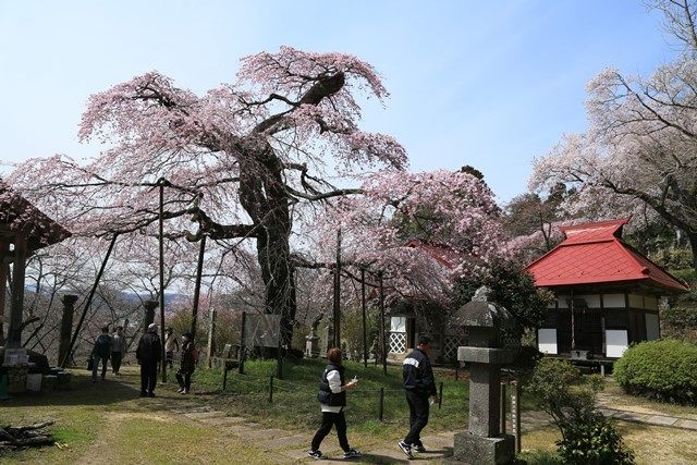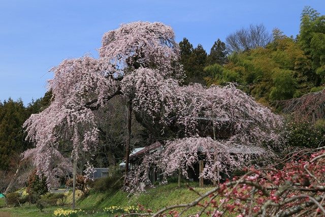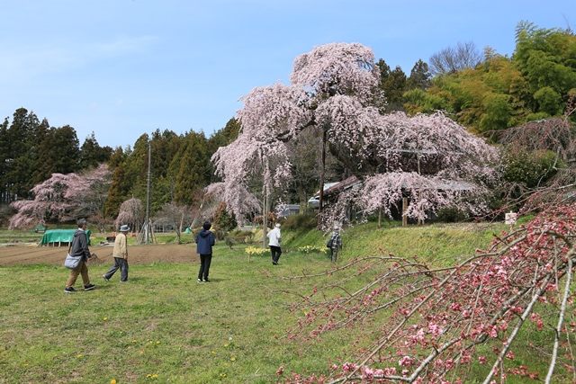 須賀川市横田にある<a href="https://www.city.sukagawa.fukushima.jp/kanko_sukagawa/kanko_event/sakuramatsuri/1003541.html" target="_blank">横田陣屋御殿桜</a>へ行って来ました。樹齢約350年の紅枝垂桜で、この地区で最も早く咲くとされ、この地を所領していた「溝口」氏の邸宅内に植えられていたのがその名の由来とされています。