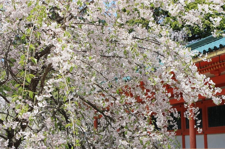 平安神宮・神苑を彩る桜と言えば「紅枝垂れ桜」。