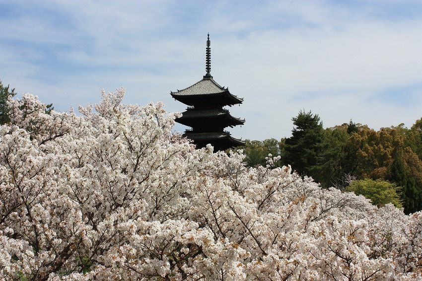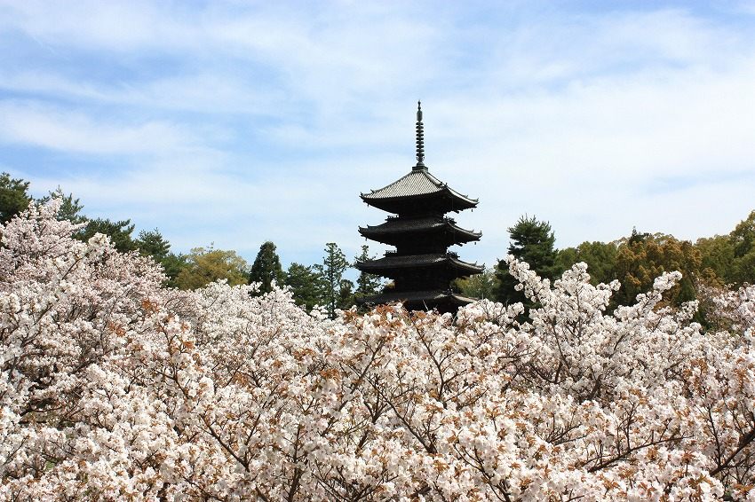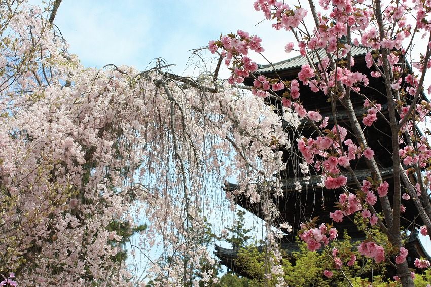 桜の海の上に五重塔が浮かぶ風景は、まさしく春の京都を