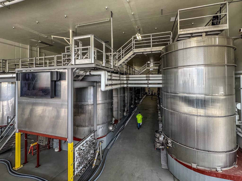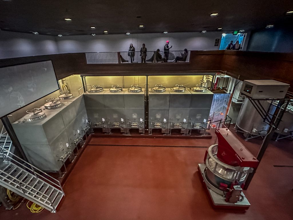 まず訪問するのが、少し進んで左手にある、ステンレス醸造タンクを望む場所です。