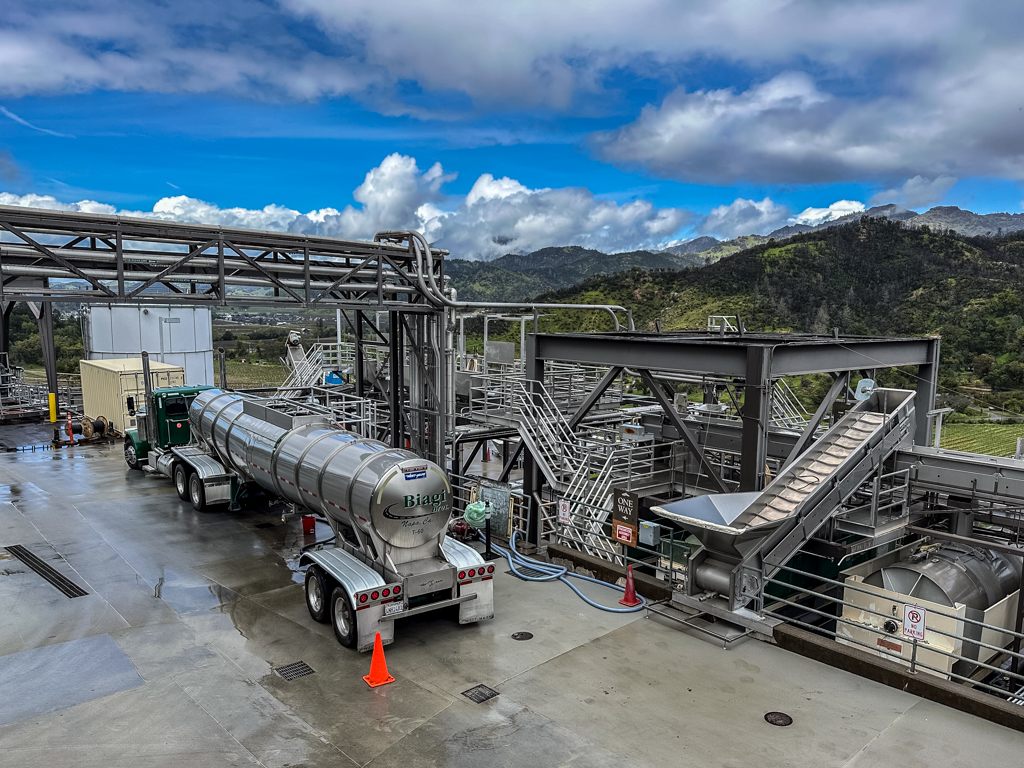 反対側は、ブドウの搬入エリアで、ブドウを運び込むベルトコンベアーなどが見えていました。