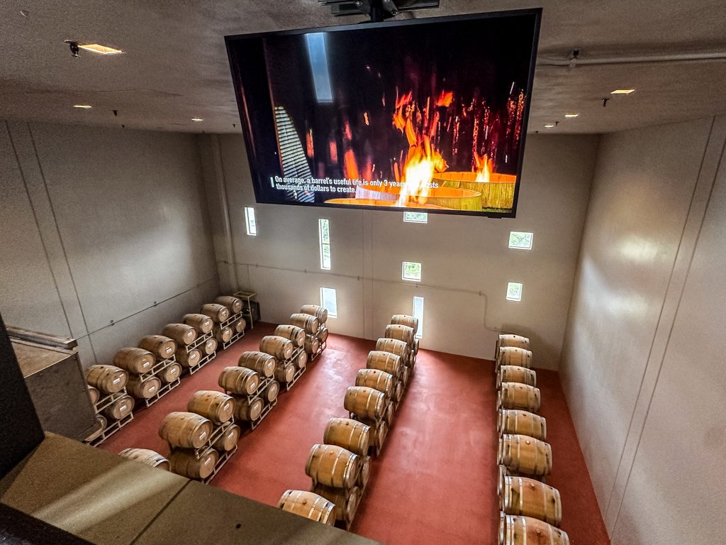その先には、ワインを寝かすワインセラーを見ることができます。温度管理のためか、小さな窓からのぞく感じです。