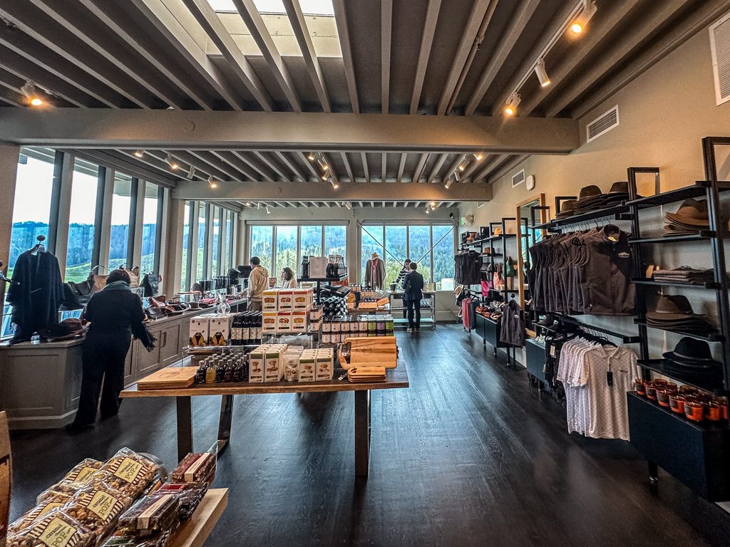 景色を堪能したら、来た道を戻って、丘の上の建物の中のワインショップにいきましょう。この日は雨だったため、こちらで最後のワインをテイスティング。買い物ができます。