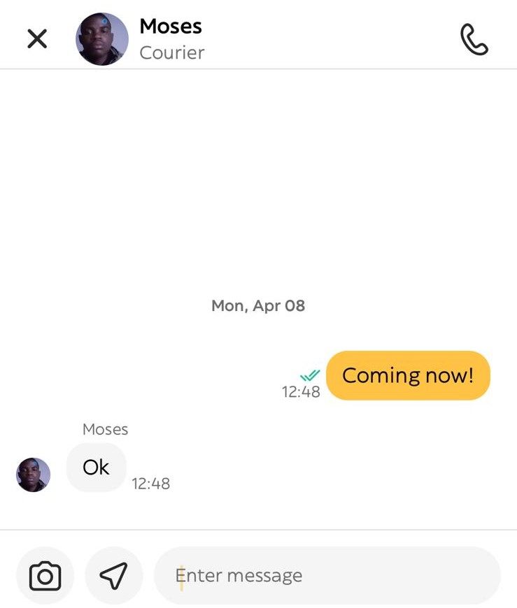 アプリにはチャットや通話機能が備わっており、配達地点が分からなかったり、大幅な遅延が見込まれる際等には配達員の方から連絡が入ります。筆者は配達地点を滞在施設の敷地外に設定しているため、到着通知を受け取った際に「今、向かっています」等とメッセージで配達員に知らせるようにしています。