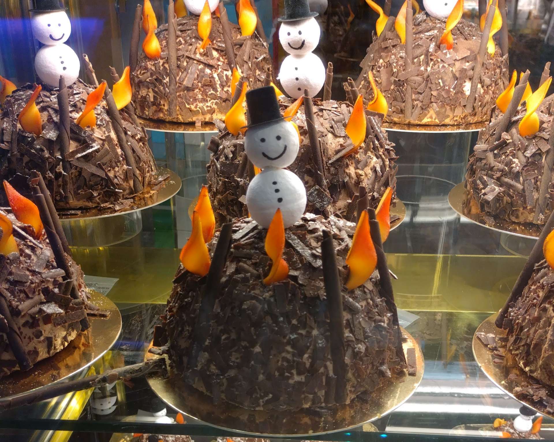 ゼクセロイテンが開催される前には、チョコレート屋さんでも上記の写真のような、ベーグ(雪だるま)をモチーフにした、春限定のケーキも販売しています。