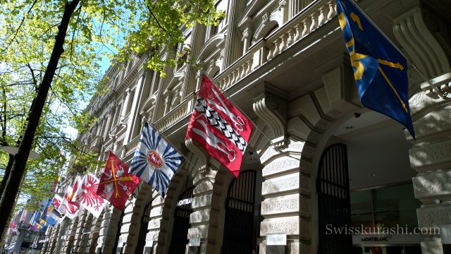 イベントシーズンは、街中に旗が飾られます。色とりどりの旗は、なんだか賑やかな雰囲気を醸し出していますよね。いつもつ違うチューリッヒの風景が見られるので、4月は街歩きも楽しいですよ。