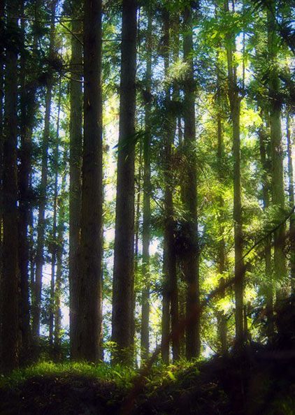 神社の背景にある山は三樹山(みきやま)といいます。鎮守の森として人の手が入っておらず、自然なままに育っているので、原始的な植生に近い常緑広葉樹で構成されています。明るい森ですが入ることは躊躇します。冬の寒さをきらう南方系と夏の暑さに弱い北方系の動植物が同居する珍しい生態系のため、1976年(昭和51年)に、岡山県指定郷土自然保護地域となりました。