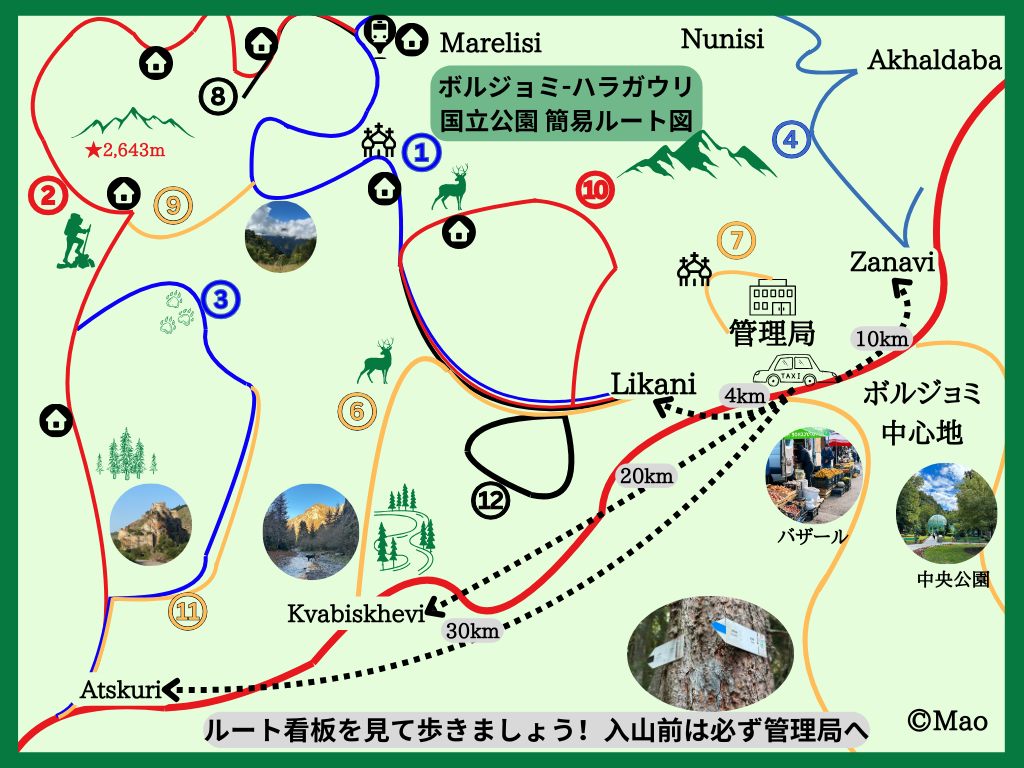 今回は、各ルートのご紹介をする前にボルジョミハラガウリ国立公園へのハイキングの基礎情報を紹介します。
