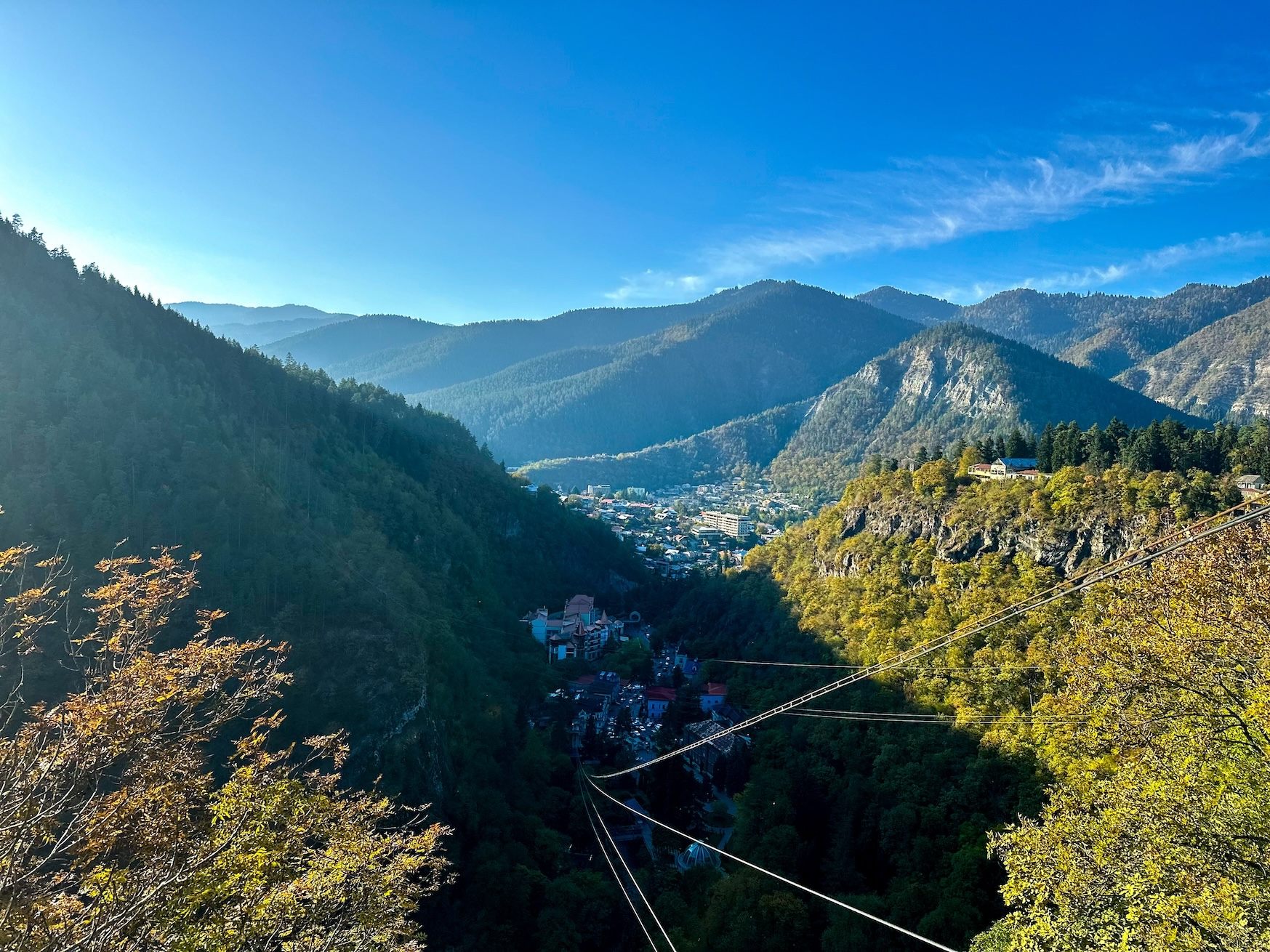 頂上は海抜1000mあり、松の木に囲まれた中央公園や街の中心部、ボルジョミを流れるBorjomula riverなどが一望できます。