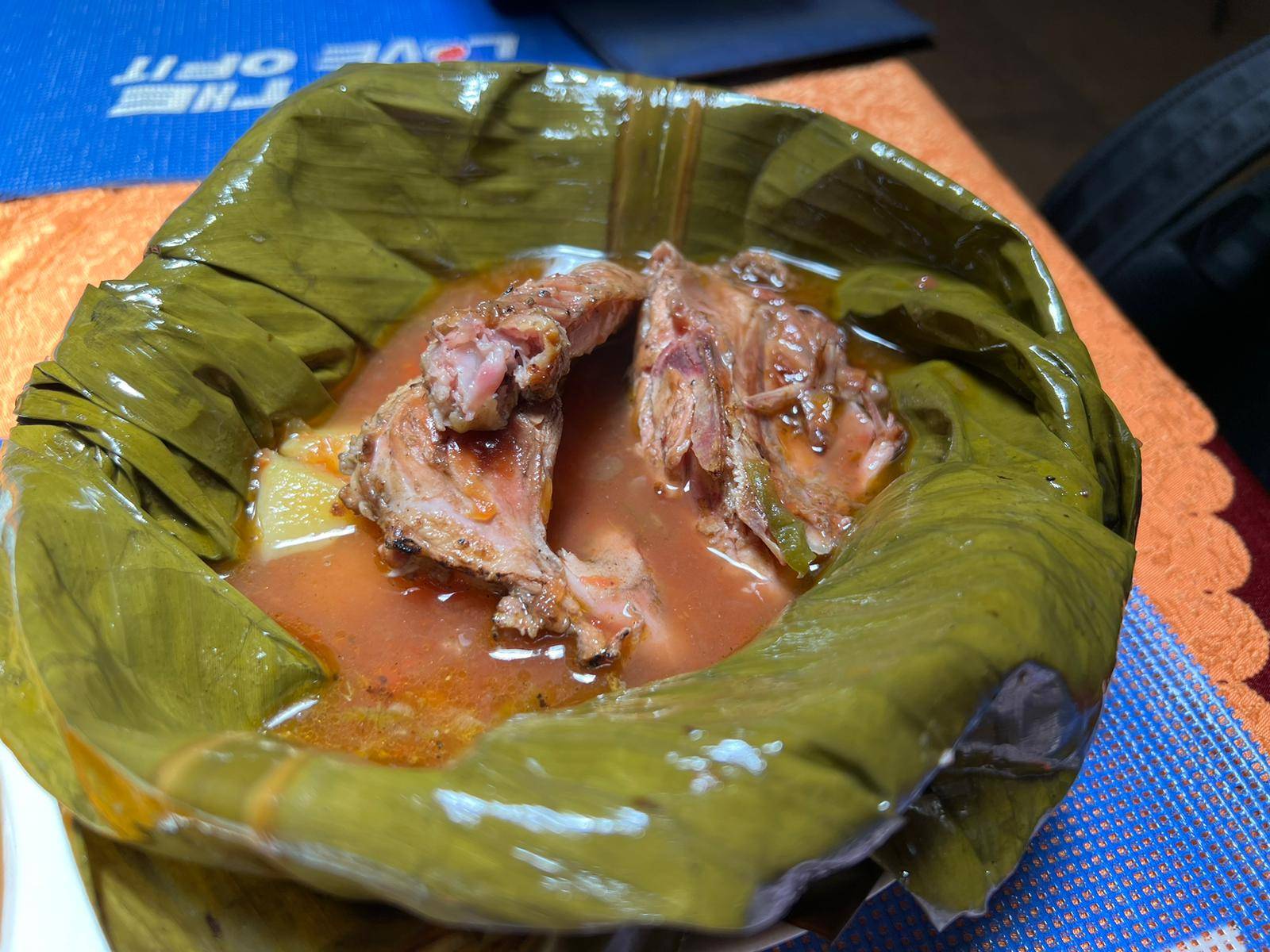 ブガンダ王国の伝統料理であるルウォンボは、バナナの皮を器にして提供される煮込み料理です。同席した運転手マイケルによると「悪いものは一切入っていない。健康料理だ。」とのことでした。確かにその通りであると感じられました。見た目とは裏腹に味はあっさりとしており、薄めの味であるものの、しっかりとチキンや野菜の旨味がにじみ出ています。