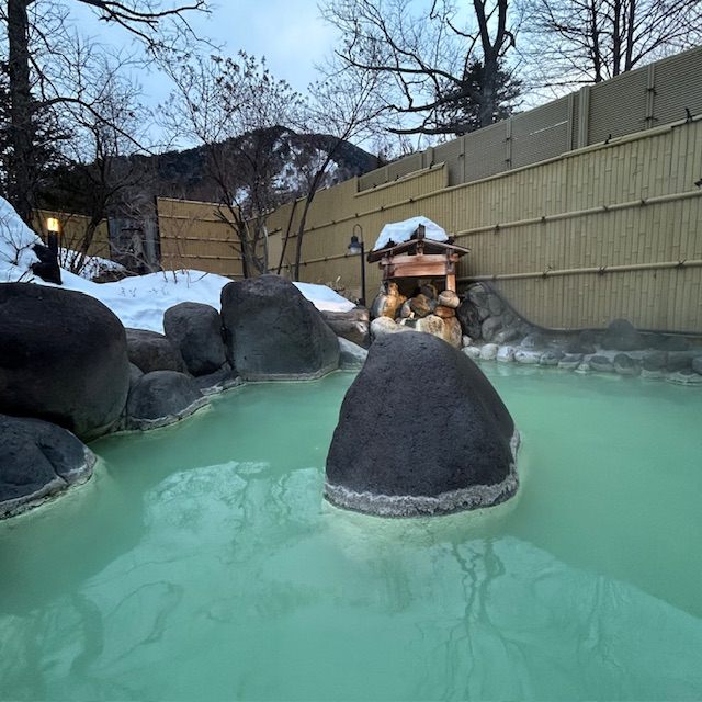 そしてなんといってもこのきれいな色の温泉。硫黄濃度も高くいい香りがします。(硫黄臭のこと)