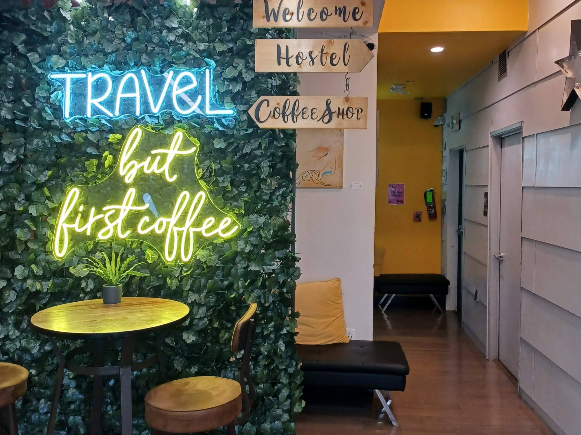 毎週金曜日夜8時からは1階ロビーで無料のビールがふるまわれます。ホステル内のカフェ「Brew on U」は朝7:00(土日は8:00)から昼2:00(水~日は3:00)までの営業ですが、日替わりで様々なメニューの割引サービスもあります。