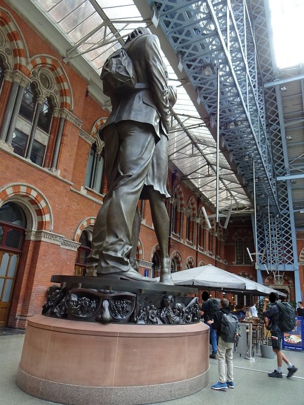 ロンドンでの移動中セントパンクラス駅を利用する機会があったら、この巨大な恋人たちの像にも足をとめてみませんか?!