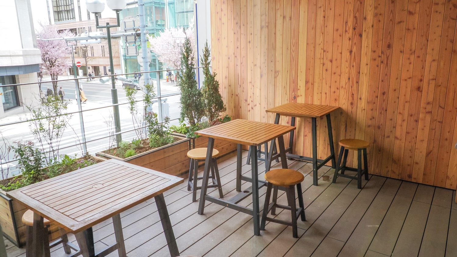 2階には、屋外テラス席もあり、タイミングよく満開のサクラが見えました。