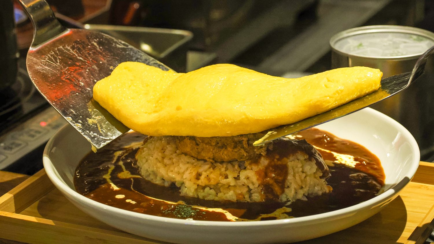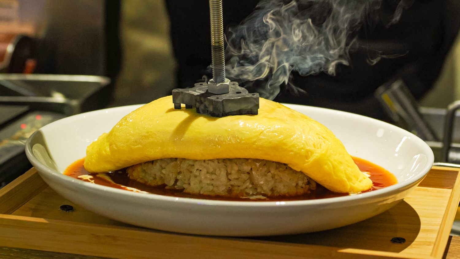 「鉄板忠良」がランチタイムにのみ限定40食で提供するオムライスは、"鉄板"を使って調理。