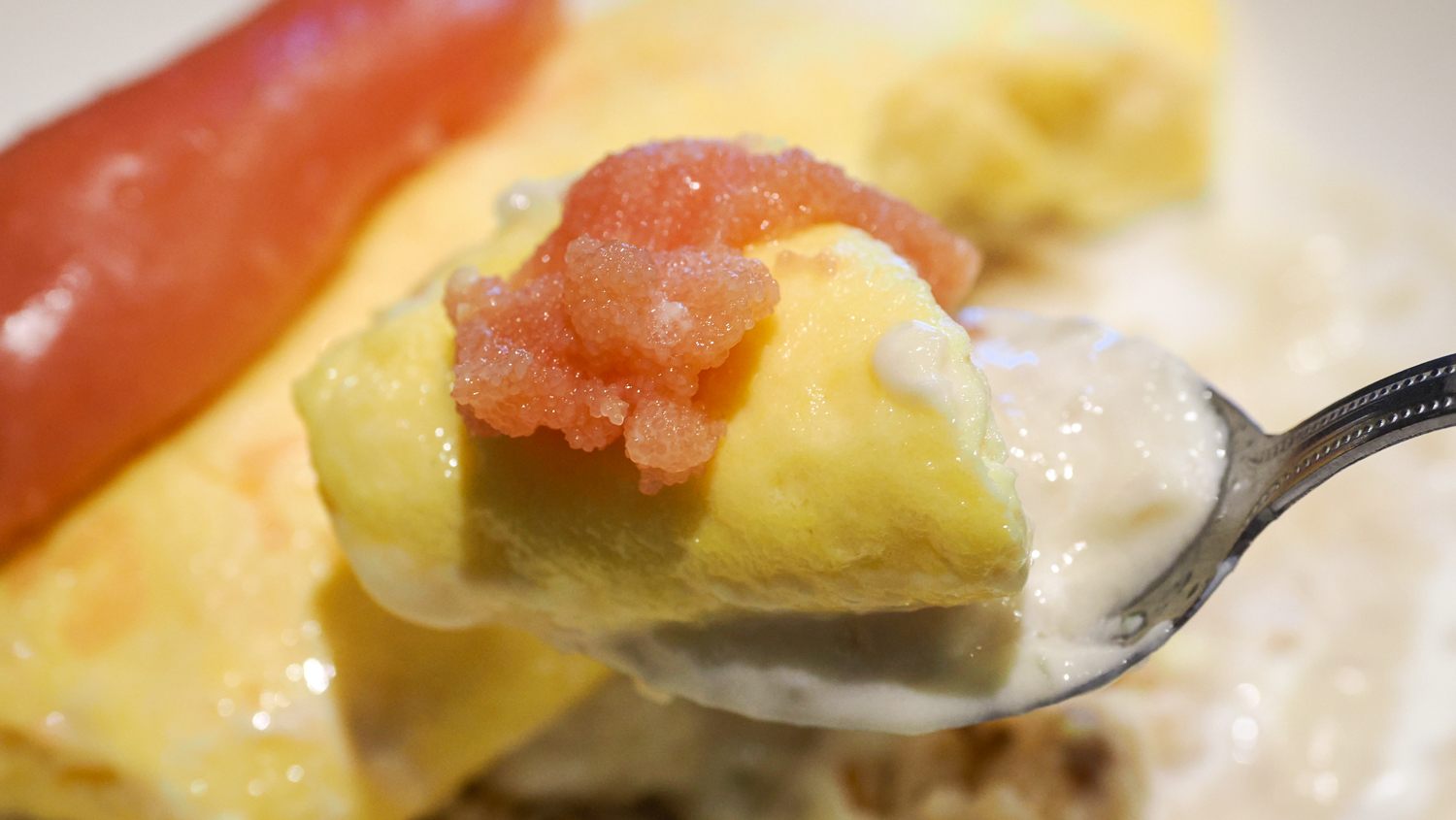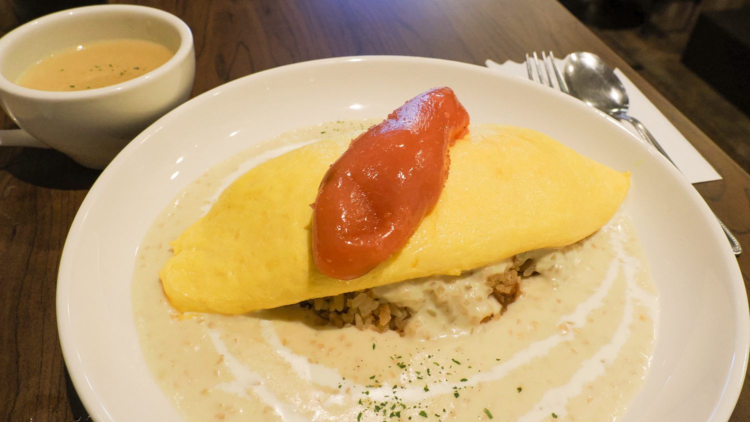 北海道らしい味を楽しみたいという方におすすめのメニューが「オムたらこ」(1,300円)。
