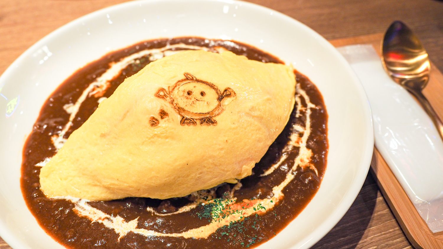 マスコットキャラクター「ぴよただ」ちゃんを焼き付けてオムライスが完成!