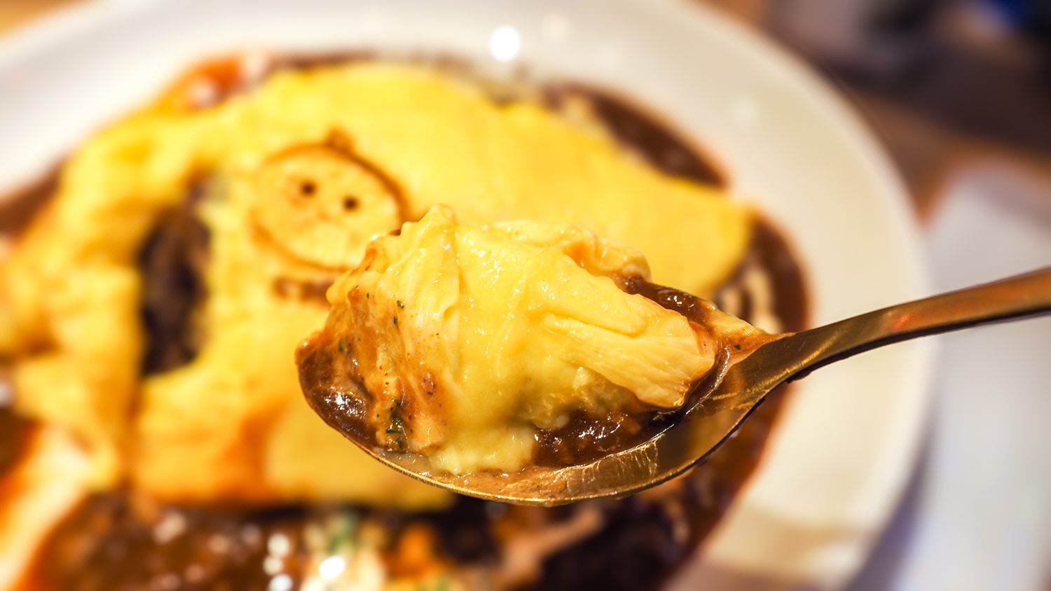 たっぷり3個分、ぜいたくな卵使いのオムライスは、卵好きにはたまりません!