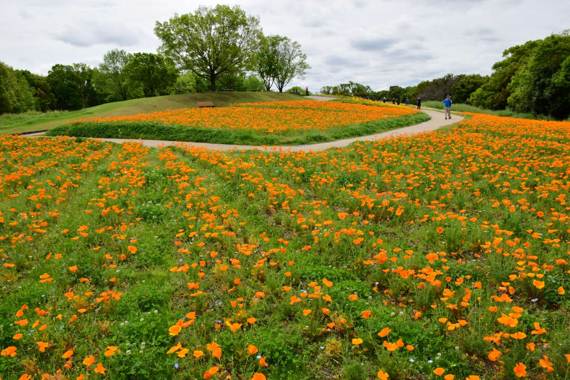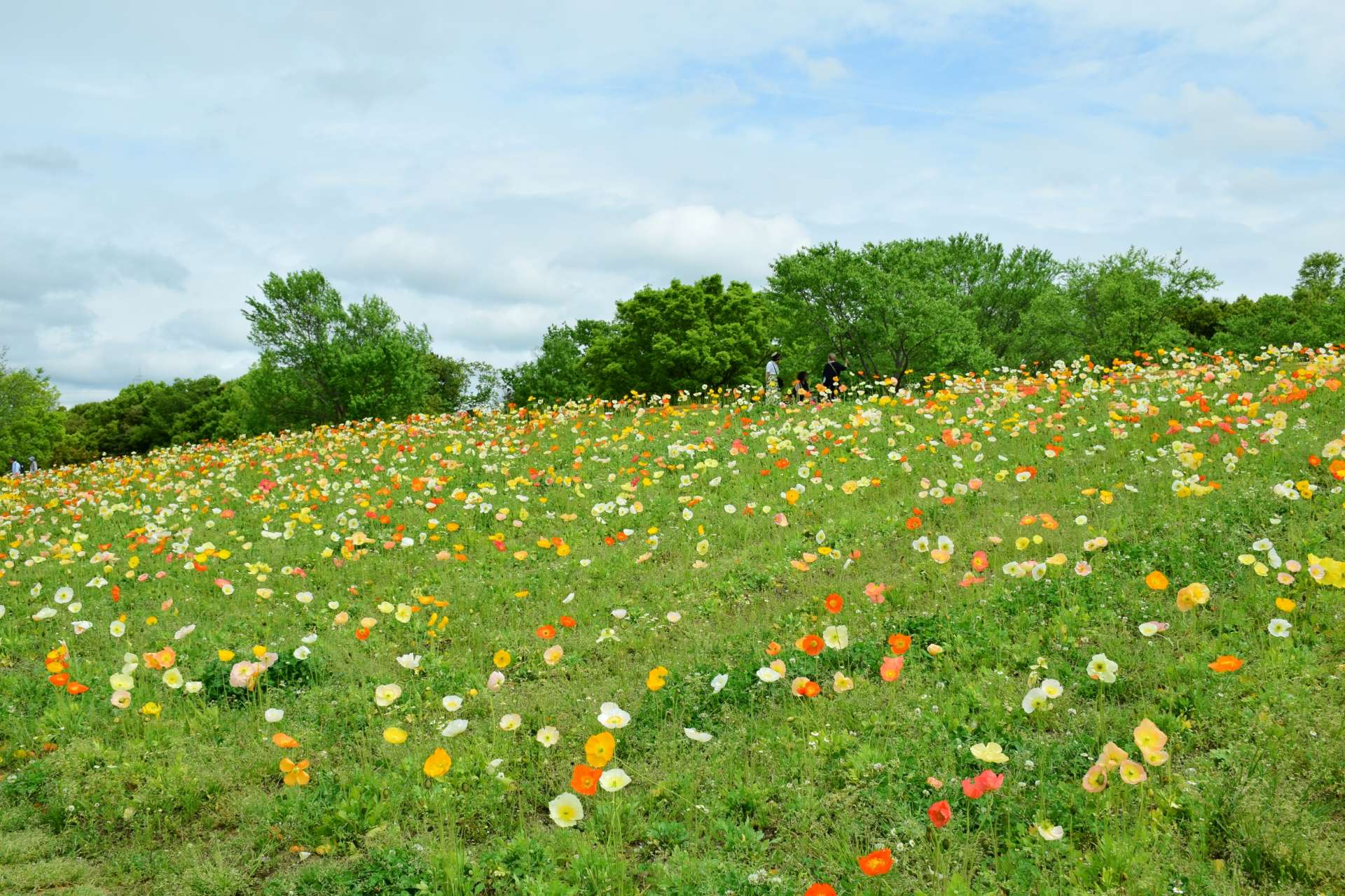 公園の西口から近い花の丘に約26万本のポピーが植えられており、風にゆらゆら揺れているところがたまらなく可愛いです。