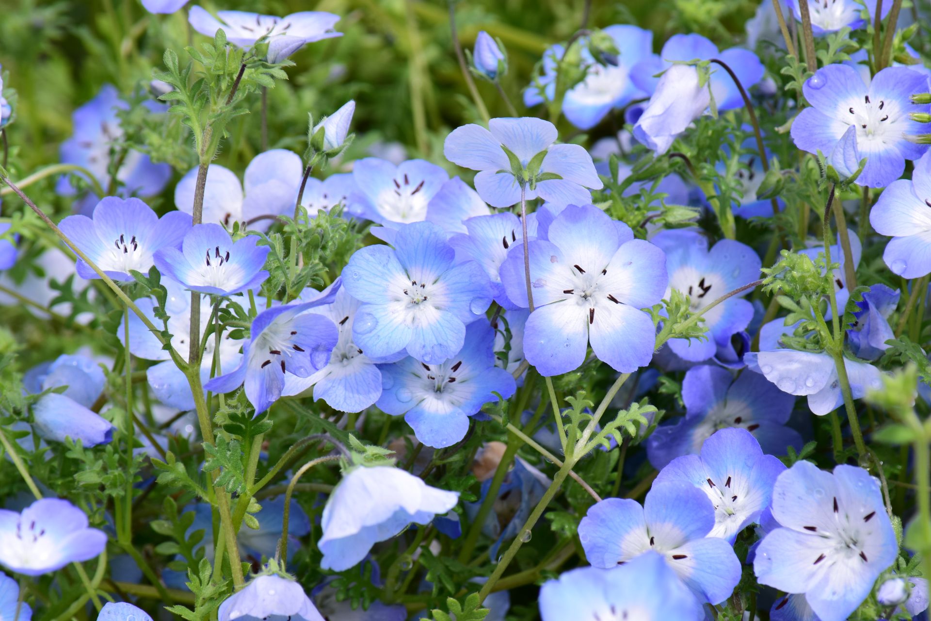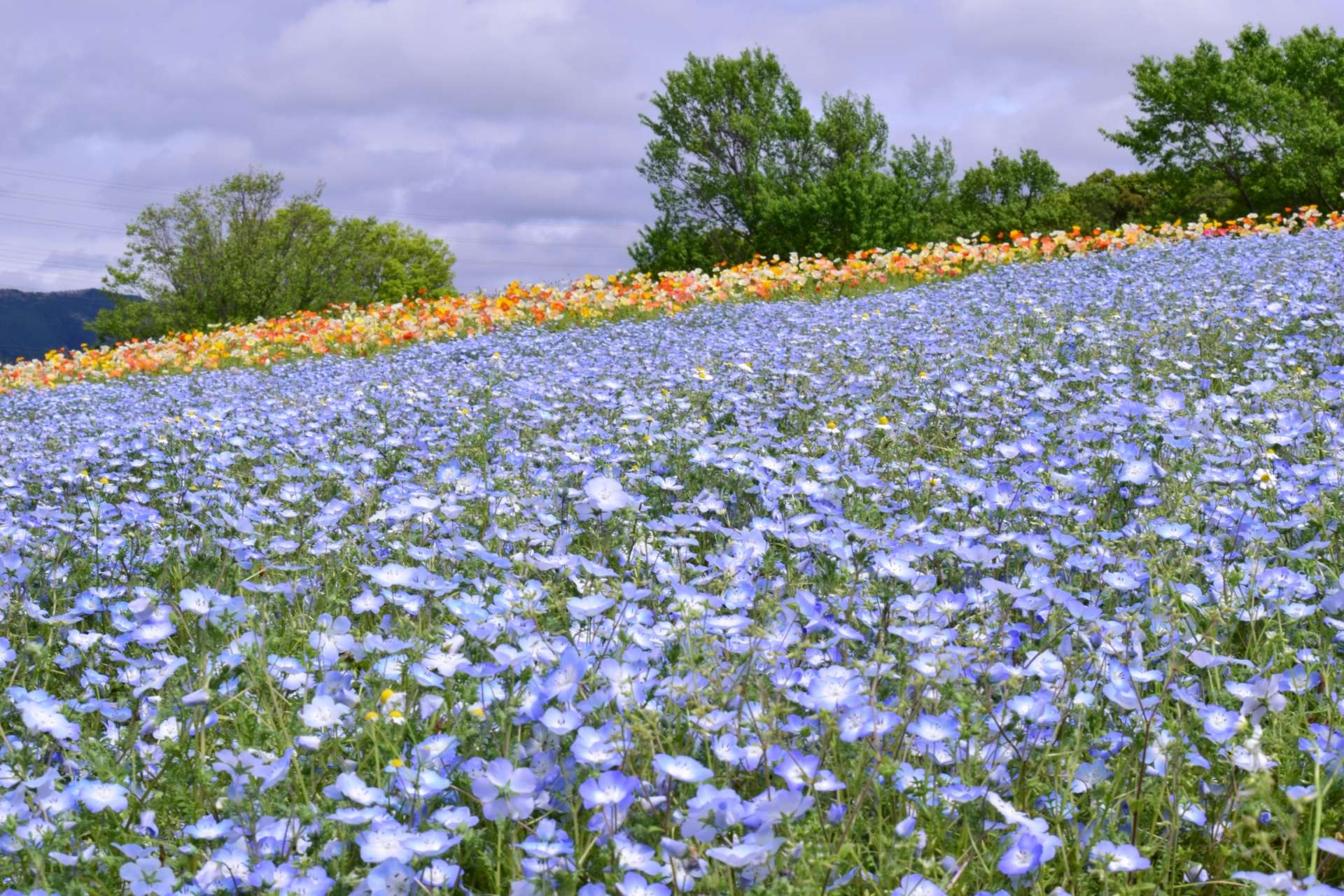 近年人気のあるお花で、大阪では大阪まいしまシーサイドパークがネモフィラで有名です。
