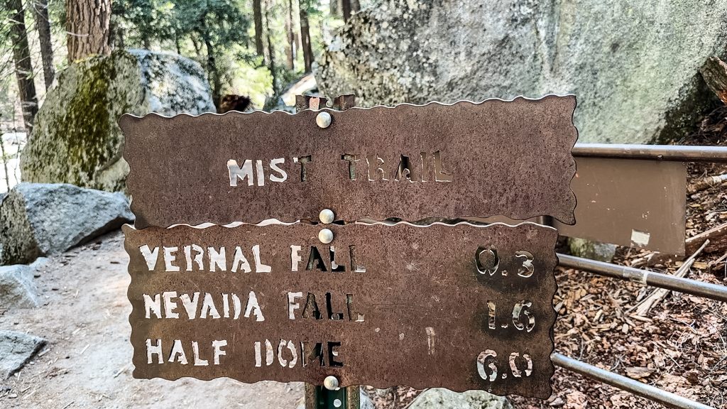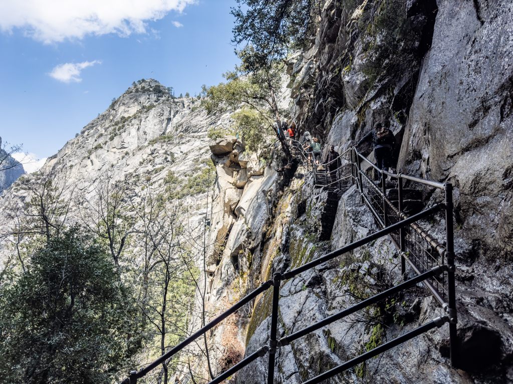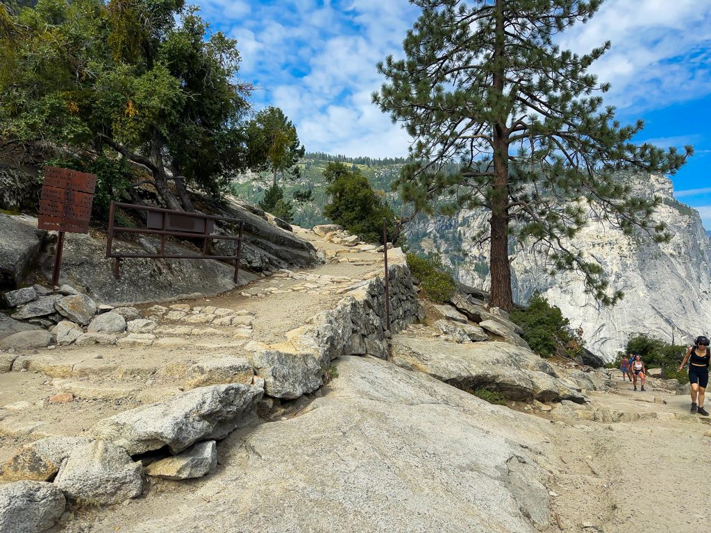トレールヘッドから、舗装されたトレールを30分ほど歩くと、Vernal Fall Foot bridgeに到着です。無理せず途中2度ほど休憩して登りましょう。