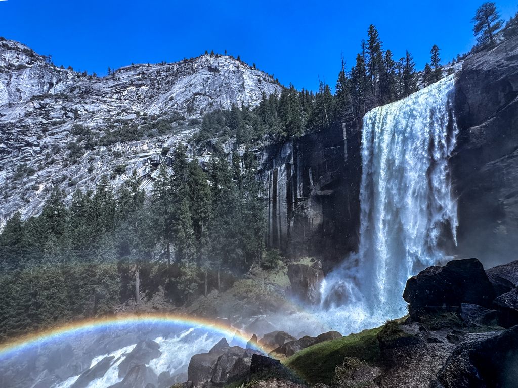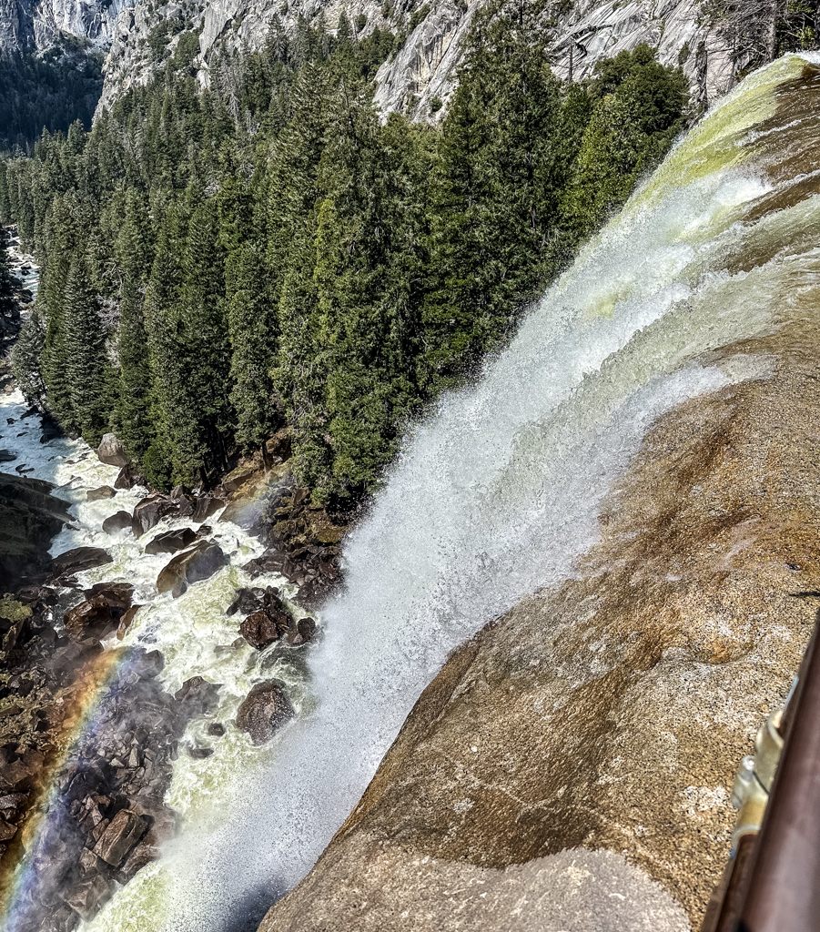 まだまだ最盛期ではないですが、それでもVernal滝の下のトレールは「豪雨」トレールとなっています。ポンチョをぜひご持参ください。ミストと言うのは大嘘です?