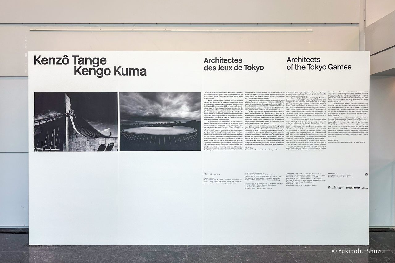 パリ・オリンピックを前にした2024年5月2日~6月29日の期間、パリ市内にあるパリ日本文化会館において国際交流基金、パリ日本文化会館、国立代々木競技場世界遺産登録推進協議会が主催して「丹下健三と隈研吾展 -東京大会の建築家たち」が開かれています。丹下健三と隈研吾という、過去2回開かれた各オリンピック東京大会(1964年および2020年)を代表する建築家に焦点を当てた特別展です。