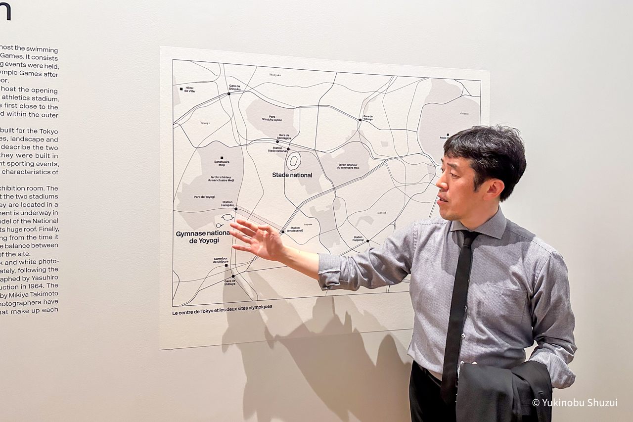 「この60年に建築はすごく発展しました。しかしモノクロで写すことで、たくさんの人が集まる建物は何が大切なのかが分かる。浮き出る共通項と違いを感じてほしい」と豊川准教授。パリ・オリンピックを控えた時期のパリ日本文化会館らしい企画展です。