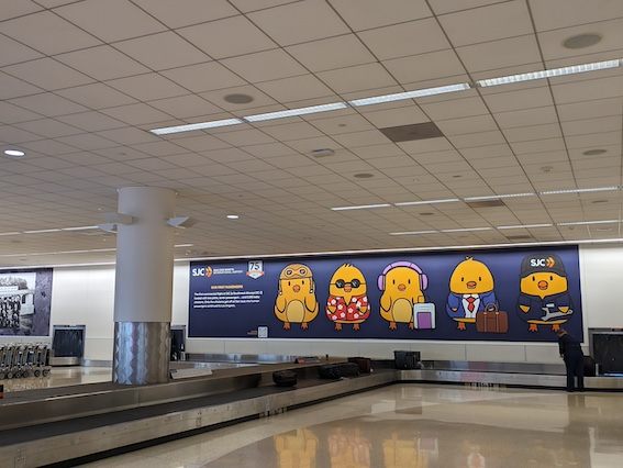 この巨大ヒヨコちゃんも普通のパネルひよこちゃんも、サンノゼ空港の一般コーナー(お迎えの方が自由に立ち入りができるところ)にたくさん並んでいます。いくつひよこちゃんを見つけられるか、試してみても面白いですね!