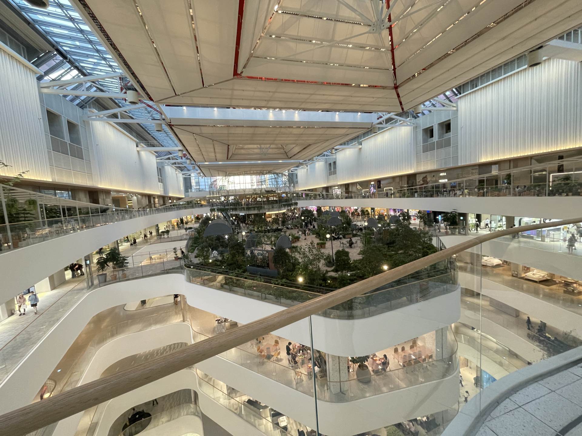 ザ・現代ソウルは2021年に汝矣島にできてから、人気の観光スポットになった現代百貨店のフラッグシップストアです。5階まで上ると、真ん中に庭園のようなスペースに入ることができ、建物の造りが独特で見るだけでも楽しめます。
