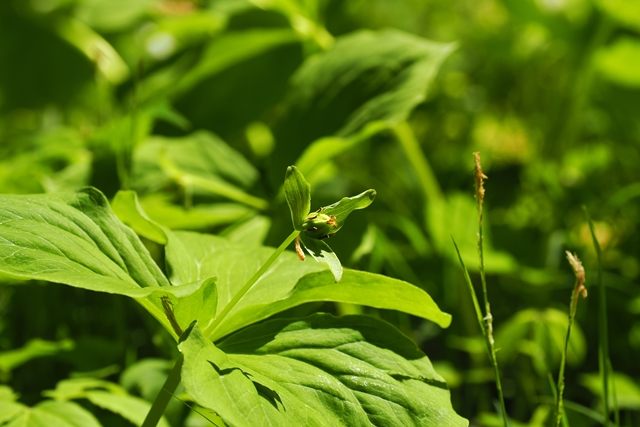 沢コースの一角には、珍しい「ミドリエンレイソウ」の姿が見られました。