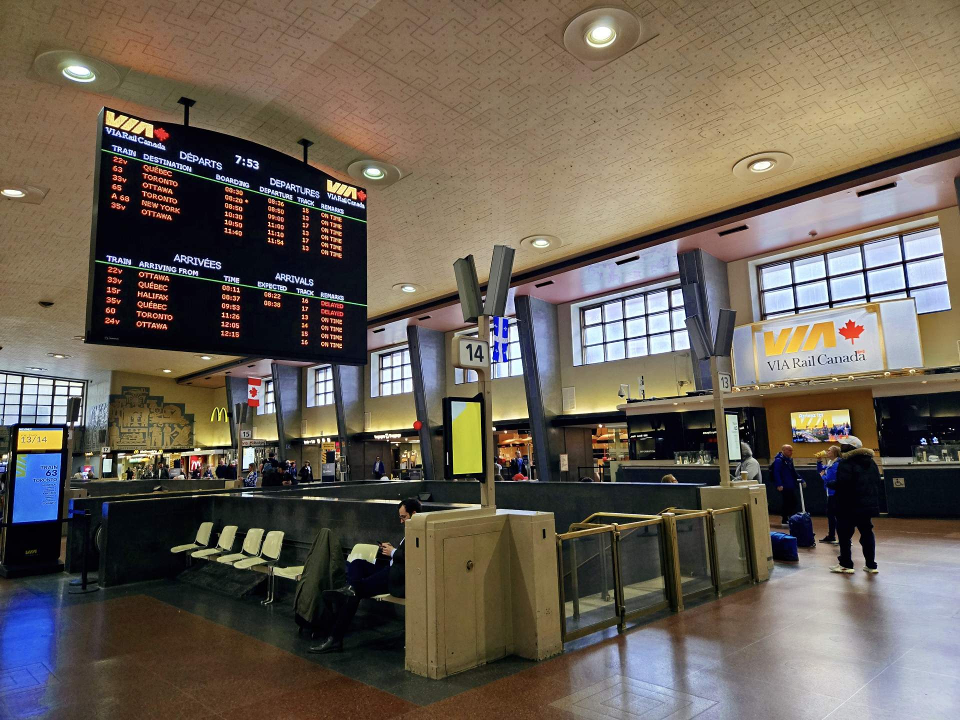 現在の駅舎は1943年につくられ、地下に21の線路と16のホームがあるこの駅は、カナダ国内各地はもちろん、アメリカのニューヨークへも行くことが出来ます。