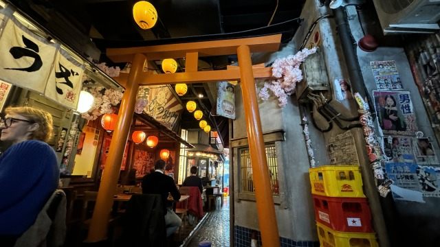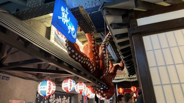 店名の六本木という名にふさわしい六本木駅の地下鉄や角のたばこやさん、鳥居にタコの立体看板とユニークです。