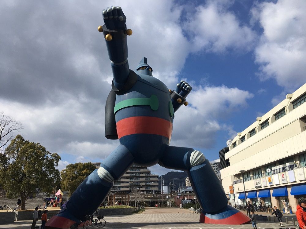 終点の新長田駅周辺は大きな商店街があり下町の風情ただよう町並みです。新長田を訪れたら神戸のB級グルメ、焼きそばとご飯を混ぜて焼いた「そばめし」は外せません。駅前の広場には鉄人28号の巨大モニュメントがあり、写真スポットとしても有名です。鉄人の足元で鬼ごっこをしている子供や、休憩している地元の方もいて、すっかり新長田の町に馴染んでいます。新長田のある長田区は昔から「靴のまち」としても有名です。品質の良い靴が比較的安価に手に入るので、ぜひお気に入りの一足を探しましょう。