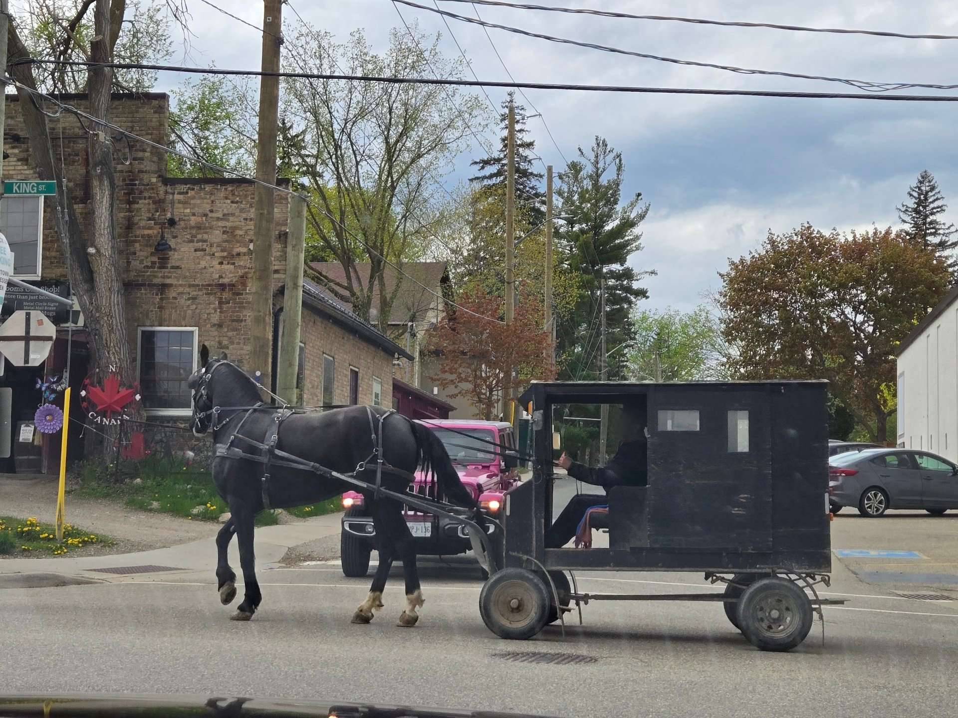 街中では時折馬車に乗ったアーミッシュの人たちが通ることも・・・。