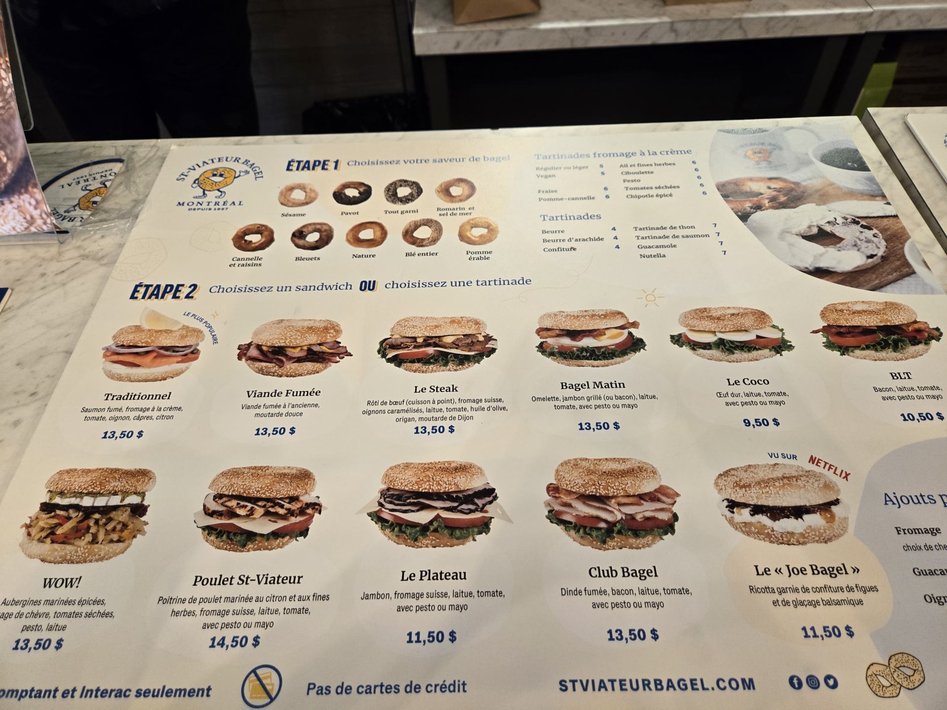 さらにはモントリオール2大ベーグルのうちのひとつ、「St-Viateur(サン・ヴィアター)ベーグル」が人気のプラトー地区で食べられるレストラン、その名も「St-Viateur Bagel & Café Mont-Royal(サン・ヴィアターベールグ&カフェ モンロワイヤル)」です。