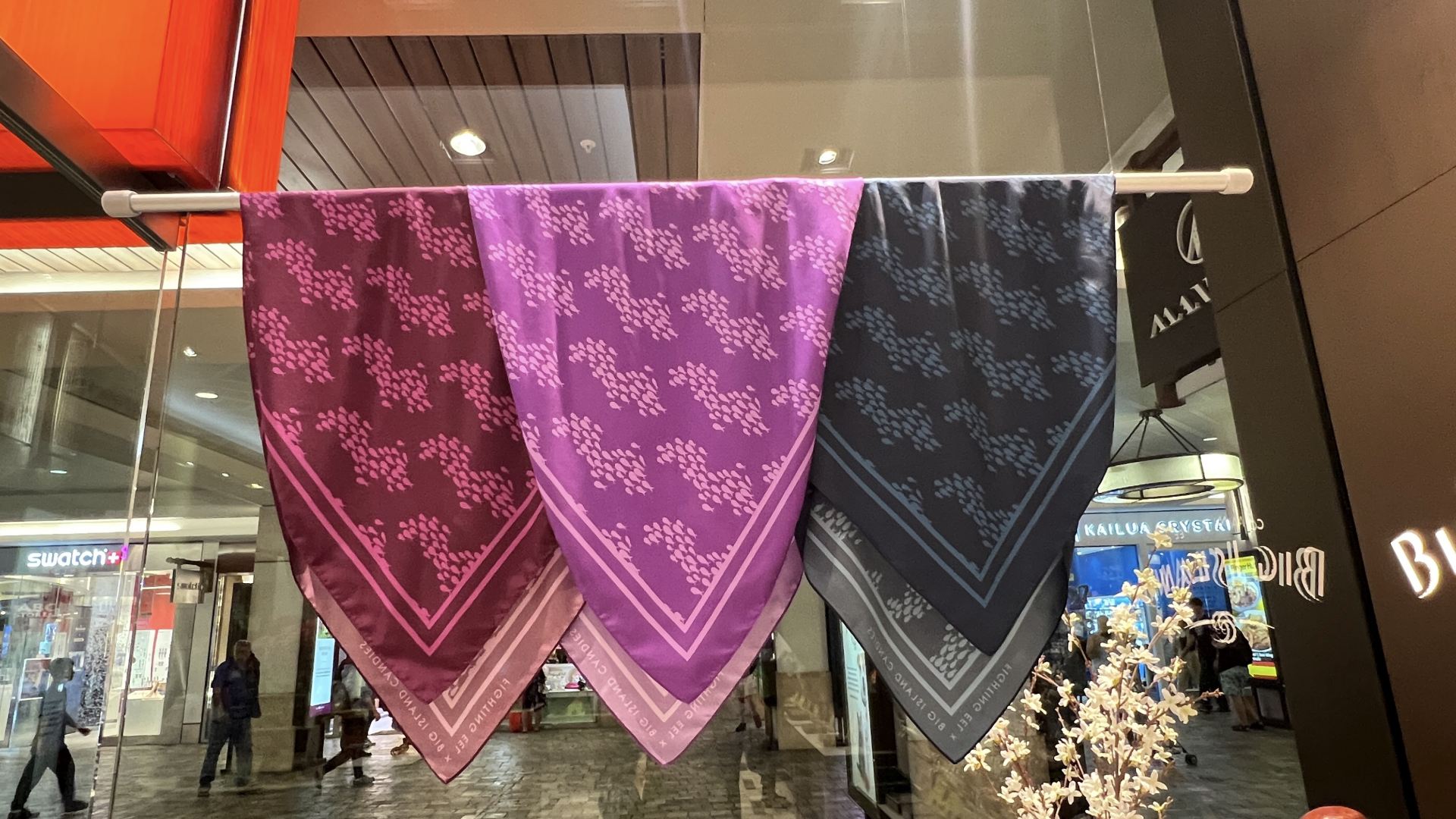 ファイティング・イールとのコラボボックスは、ビッグアイランド・キャンディーズのハワイ島ヒロの旗艦店では23.50ドル、アラモアナセンター店では24.50ドルで販売中です。シルクスカーフは64.00ドルです。