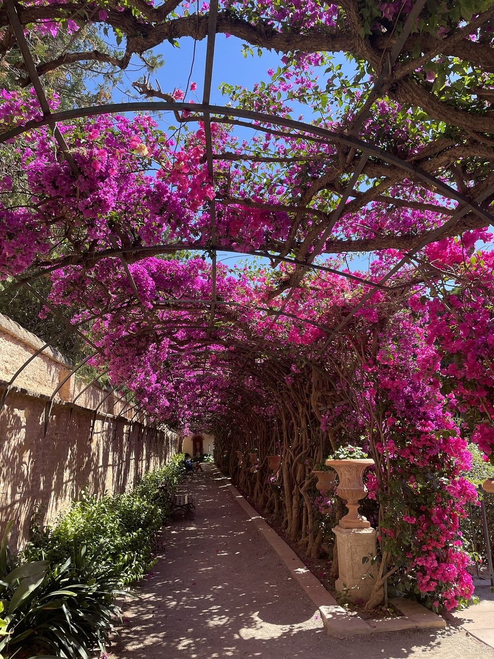 ブーゲンビリアは個人宅のベランダなどでも目にしますが、圧巻なのはモンフォルテ庭園(Jardín De Monforte)のブーゲンビリアのトンネルです。うっかり横で写真を撮り忘れてしまったので見にくくてすみません。トンネルの中にはいくつかベンチがあるので、そこに座ってゆっくり楽しみたいですね。