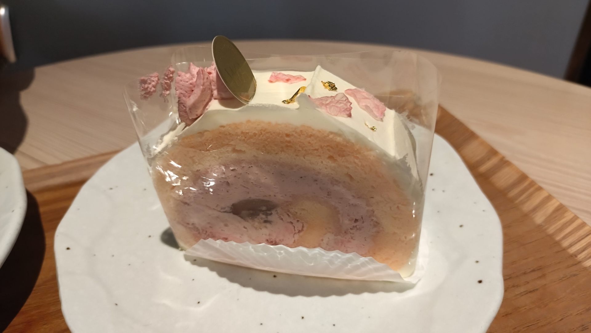 さくらの風味と、中心に白餡のようなペイストが口の中に広がって、ロールケーキなのに味の創作料理みたいに、素材の味がとてもよく表現されていました。