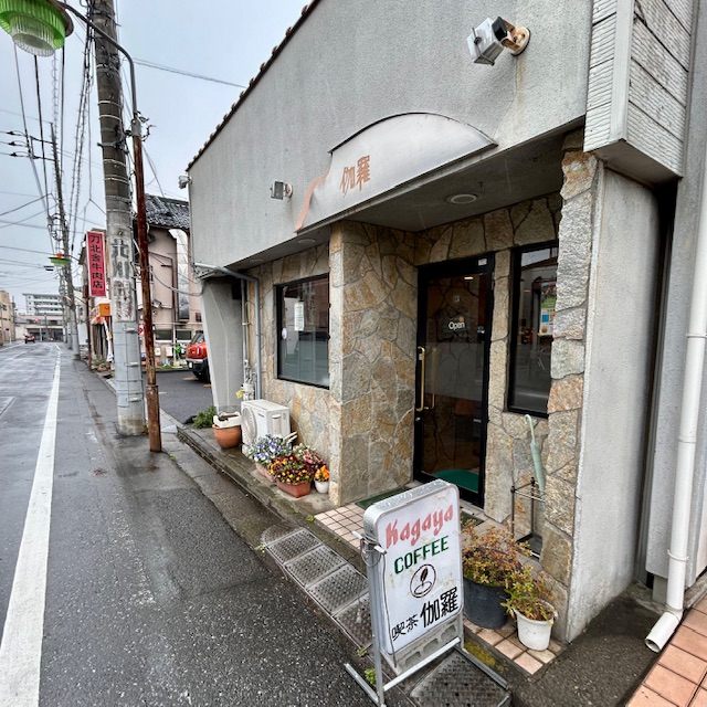 喫茶伽羅の看板は昭和のレトロ感あってほっとします。学生時代に通った喫茶店を思い出します。