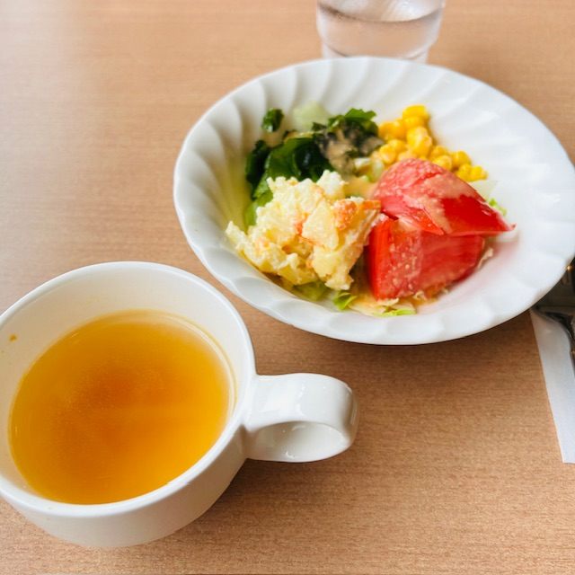 まずはスープとサラダです。