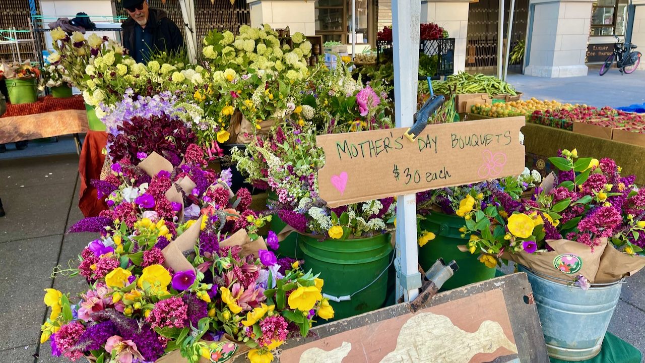 懐かしく母の味噌汁を思い出していたら、翌日がマザーズデー!ロンリー・マウンテン・ファームで、母の日ブーケが並んでいました。カラフルで素敵なブーケでした。