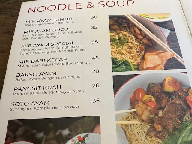 メニューは、インドネシア料理中心で、インドネシア語、英語表記です。