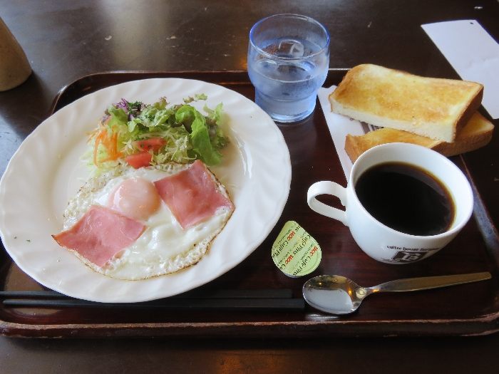 モーニングBセット 650円(トースト、ベーコンエッグ、サラダ、コーヒー)