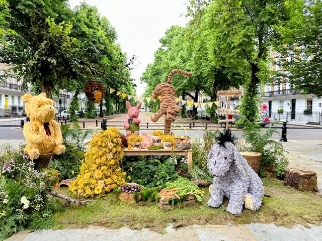 『くまのプーさん』の作者、ミルンは21年もの間チェルシー地区に住んでいたそうで、ピグレットやティガーなどおなじみの登場キャラクターがピクニックをする作品もあります。