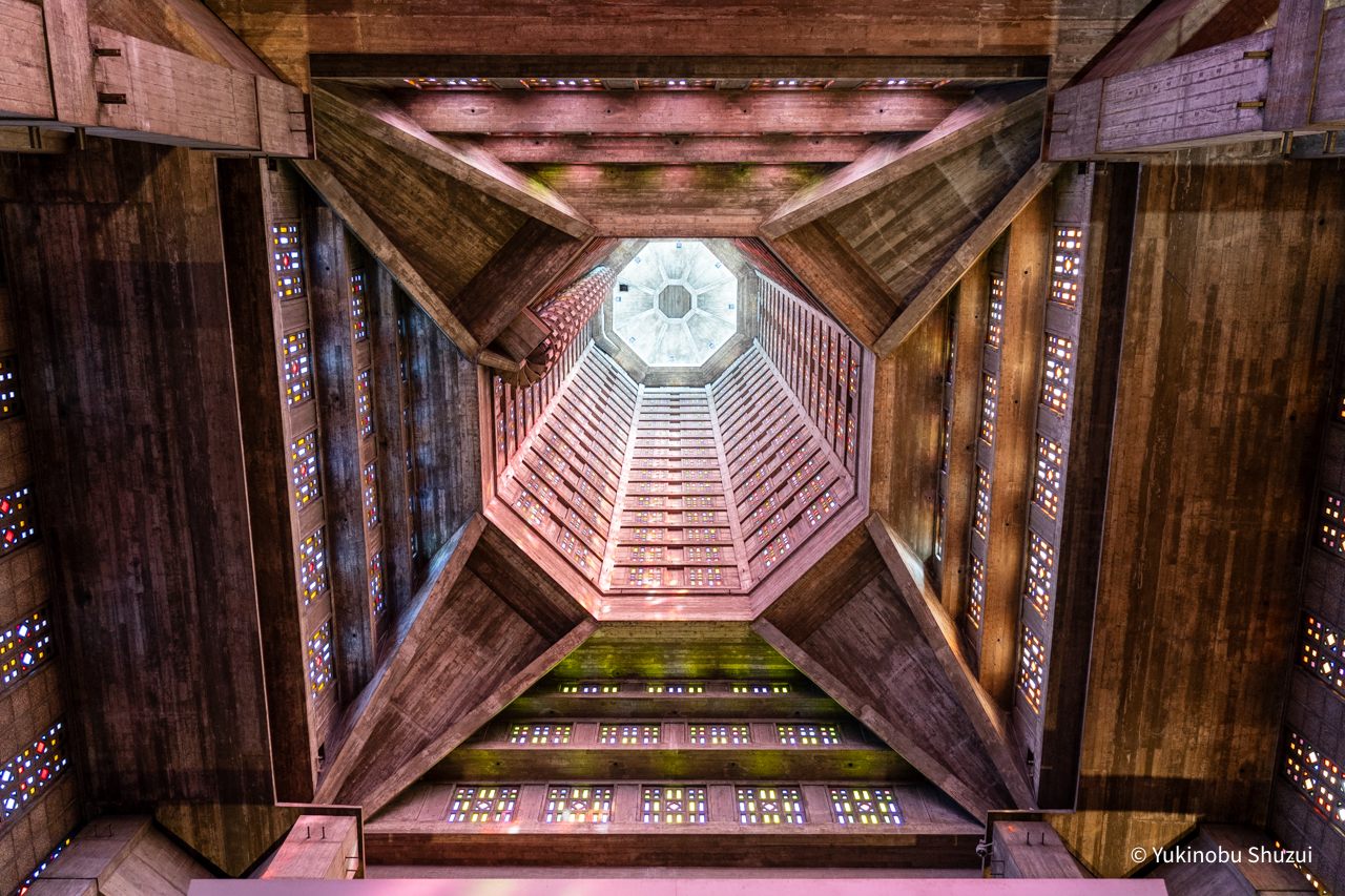 ル・アーヴルでまず訪れたいのが、サン・ジョセフ教会。ル・アーヴルの都市再建計画の一環として建てられた教会で、外観の直線的な構造、そして内部の幾何学的なステンドグラスが見事です。