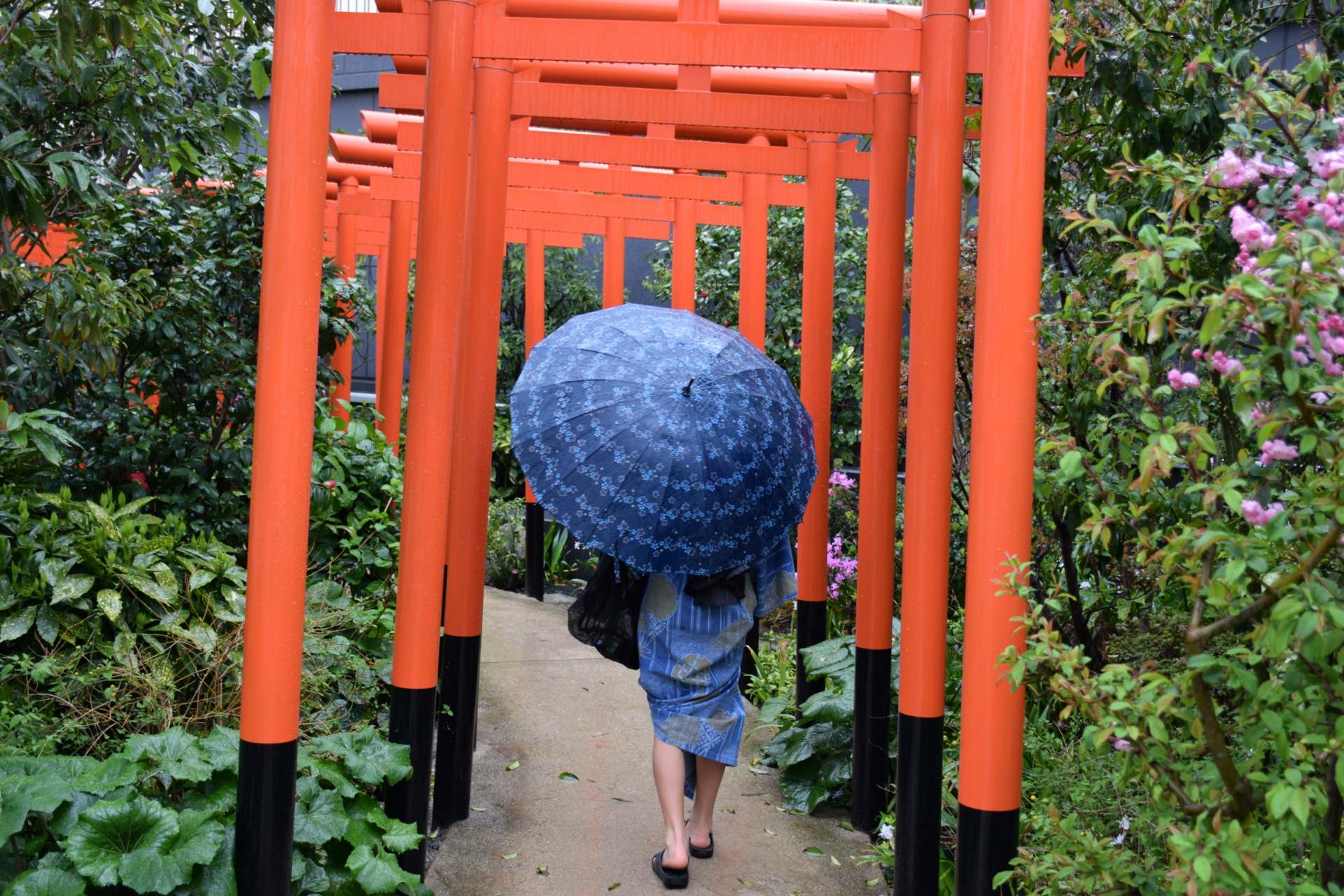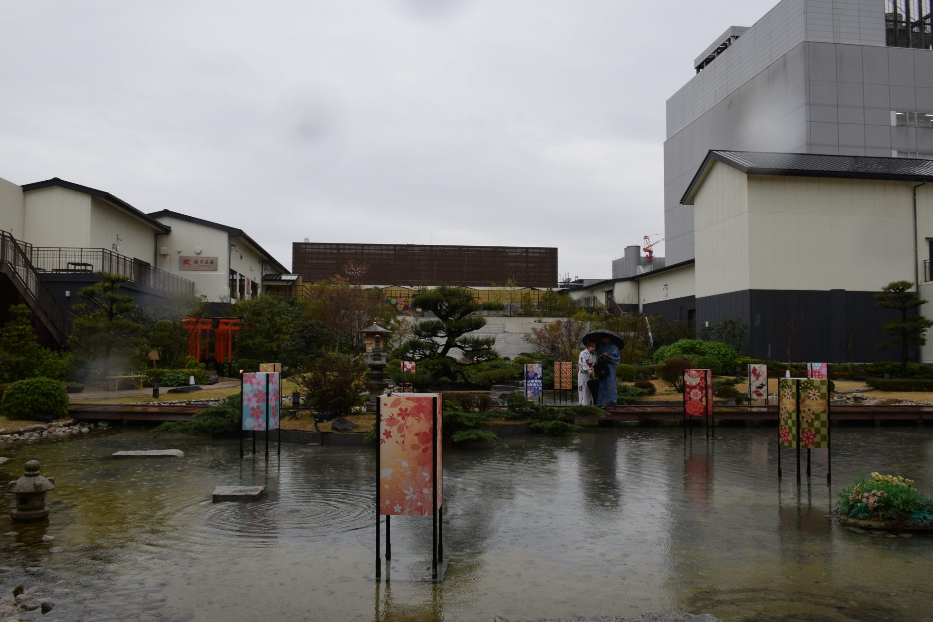 天気はあいにくの雨だったのですが、和傘の貸出があり、皆さん思い思いのポーズで写真を撮っていました。