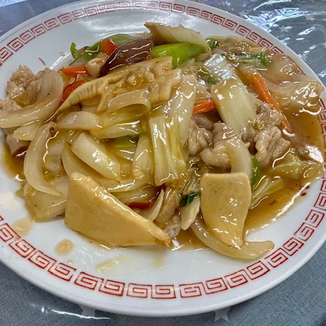 中華丼 お皿で出てくるタイプで、野菜がいっぱい入って餡はトロトロでした。