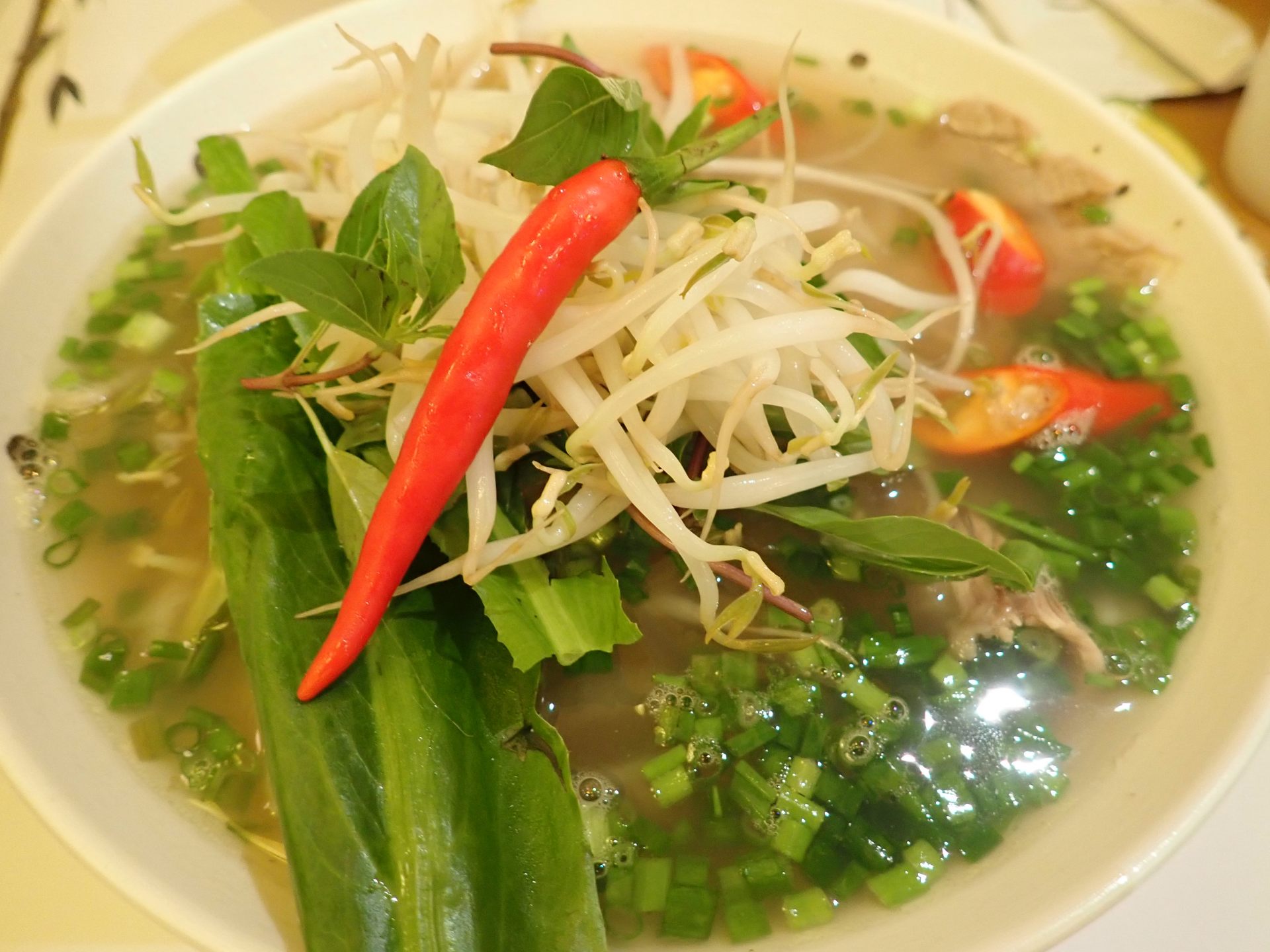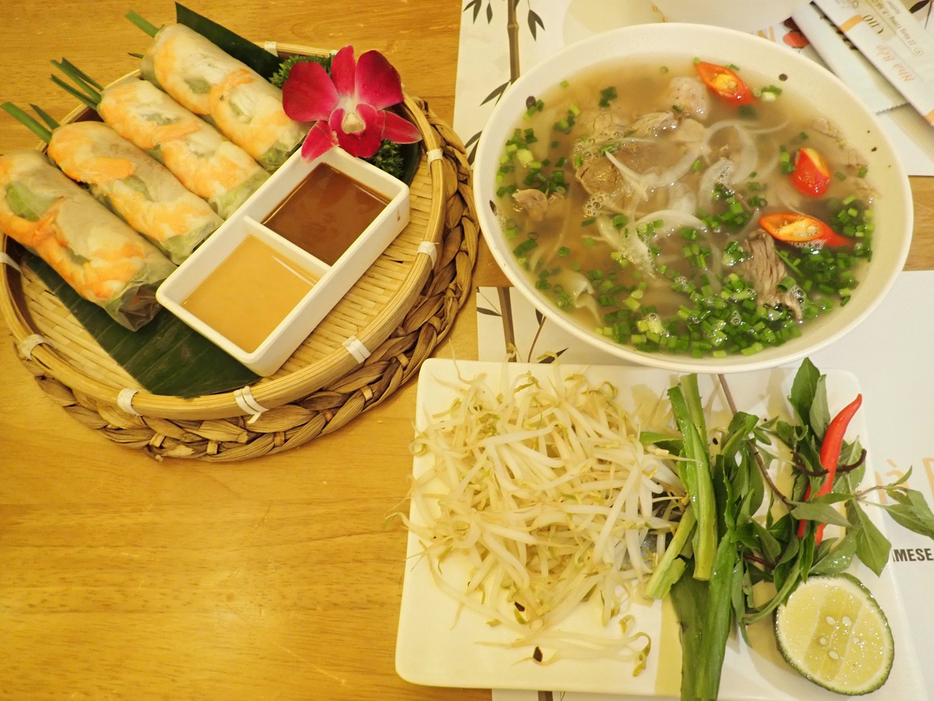 ローカルな食堂では衛生面が不安ですが、こちらはウェットティッシュがあり、トイレもきれいなので、安心して利用できるレストランです。価格はフォーが89,000ドン、生春巻きが99,000ドンでした。