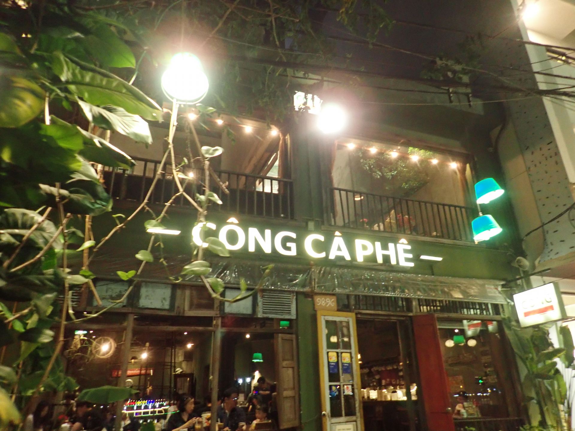 ベトナムの人気コーヒーチェーン店、コンカフェですが、こちらのお店はハン川を眺めながら、コーヒーを味わえます。夜になると、夜景も楽しめてお得な感じがしました。